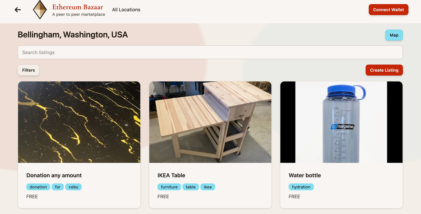 The Ethereum Bazaar from Ori Shimony inspired me to learn what design is needed to support more peer-to-peer collaboration and skill sharing among people close to each other.