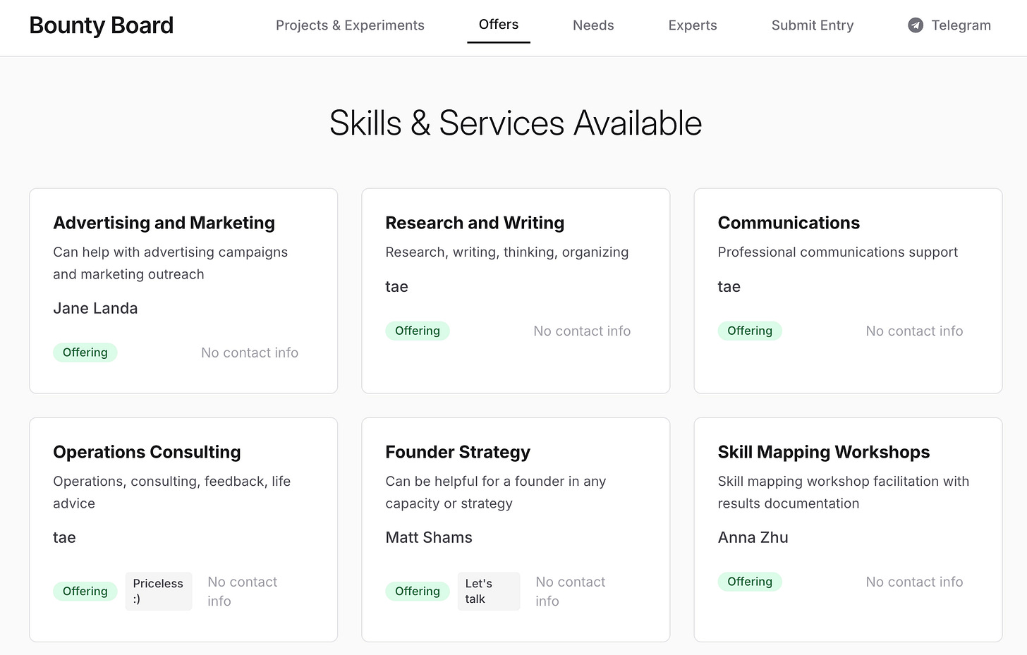 I was wondering if anyone would hire each other from the internal team for small paid bounties. The pricing on the marketplace seemed helpful, but nobody actually paid or was paid for services. Instead, we saw a lot of support and collaboration, which seems like a more reasonable alternative.